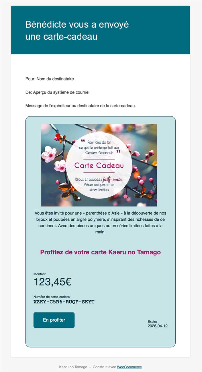 Si vous souhaitez une version papier, ou un envoi plus personnalisé rendez-vous sur les Cartes cadeaux classiques.